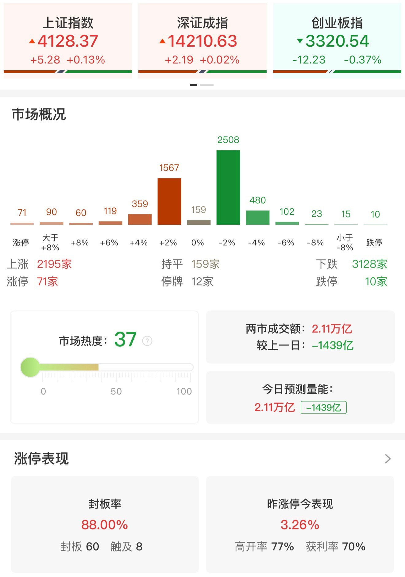 财联社2月10日电,市场全天窄幅震荡,三大指数涨跌不一,科创50指数涨近1%。沪深两市成交额2.11万亿,较上一个交易日缩量1439亿。盘面上,全市场超3100只个股下跌。从板块来看,传媒板块持续全天领涨,万达电影、读客文化、捷成股份、荣信文化、横店影视、上海电影、博纳影业、中国电影、光线传媒等多股涨停。人形机器人概念表现活跃,万向钱潮涨停。PCB概念震荡拉升,南亚新材、宏和科技双双创历史新高。下跌方面,商业航天概念下挫,顺灏股份触及跌停。大消费板块震荡下跌,杭州解百跌停。截至收盘,沪指涨0.13%,深成指涨0.02%,创业板指跌0.37%。